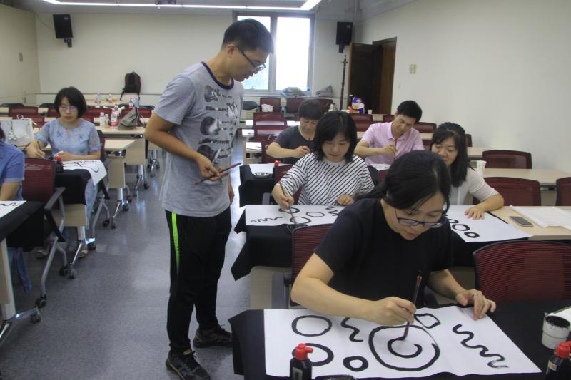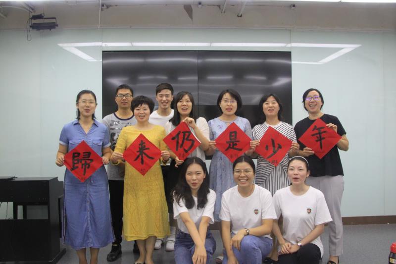 座谈会后,学院请来了书法老师,在308开展了‘再上一次课’的主题活动,和校友们一同书写‘归来,仍是少年’,之后合影留念。