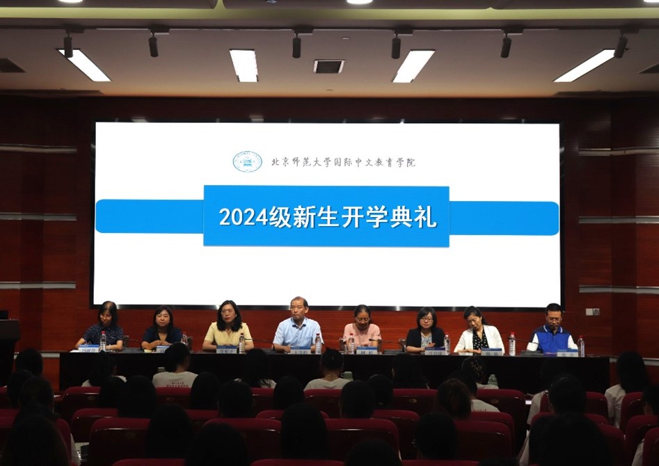 9月1日下午14时30分,北京师范大学国际中文教育学院2024级新生开学典礼在图书馆三层学术报告厅举行。学院党委书记王学松,院长冯丽萍,学院党委副书记任雅才,副院长柯航、汪珍珠、杨泉,汉语语言系主任张会,新生班主任刘智颖出席此次开学典礼。典礼由院长冯丽萍教授主持。