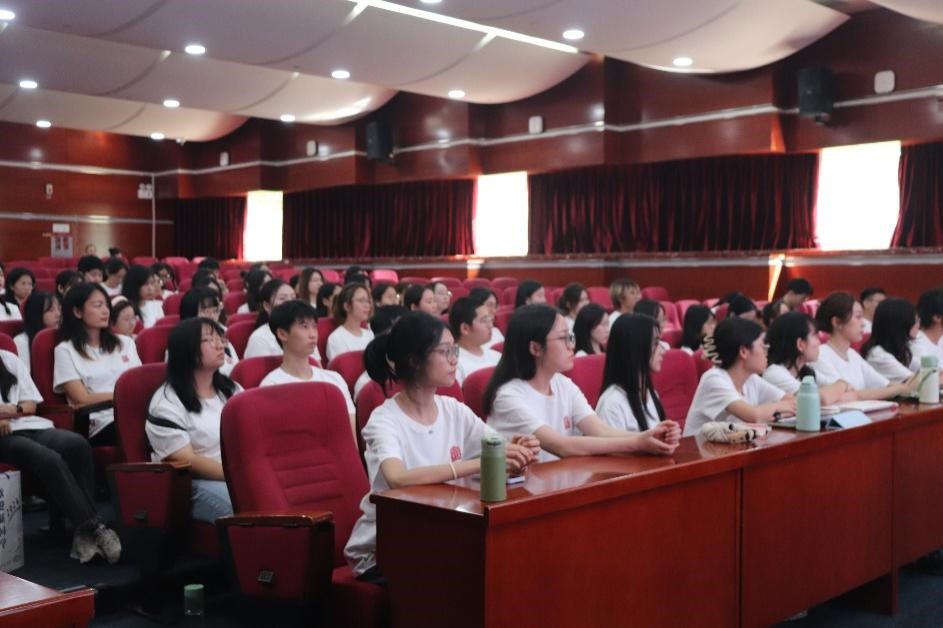 在全面、系统地介绍学院基本概况后,王学松教授用三个“立”字表达了对新生的建议与希望:第一,立足当下,突破自我。贯彻落实学、知、行相统一的学习方法,切实提高专业素养和科研能力;第二,立足中国,胸怀天下。努力承担让世界认识中国、让中国了解世界的双重责任;第三,立德修身,践行师范。将“师范”作为成长主题词,争做有理想信念、有道德情操、有扎实学识、有仁爱之心的“四有”好老师。