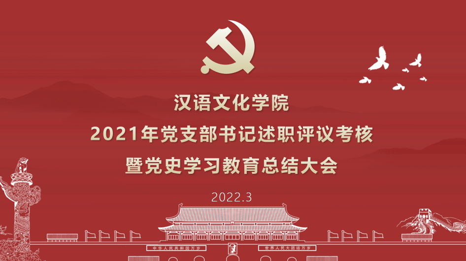 3月4日下午,汉语文化学院党委在主楼308会议室召开2021年度党支部书记述职评议考核暨党史学习教育总结大会。校党委组织员、学院党委委员、党支部书记出席会议。会议由汉语文化学院党委副书记任雅才主持。