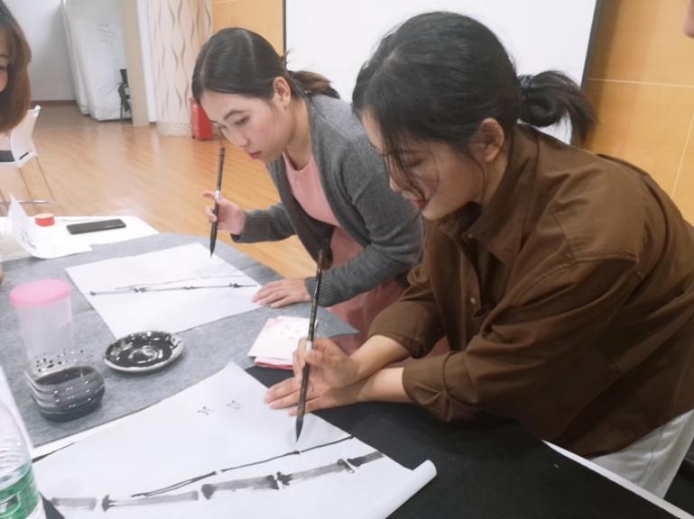 活泼但认真的一轮语言知识学习过后,学习交流会的中心开始转向文化组和汉字书法组。