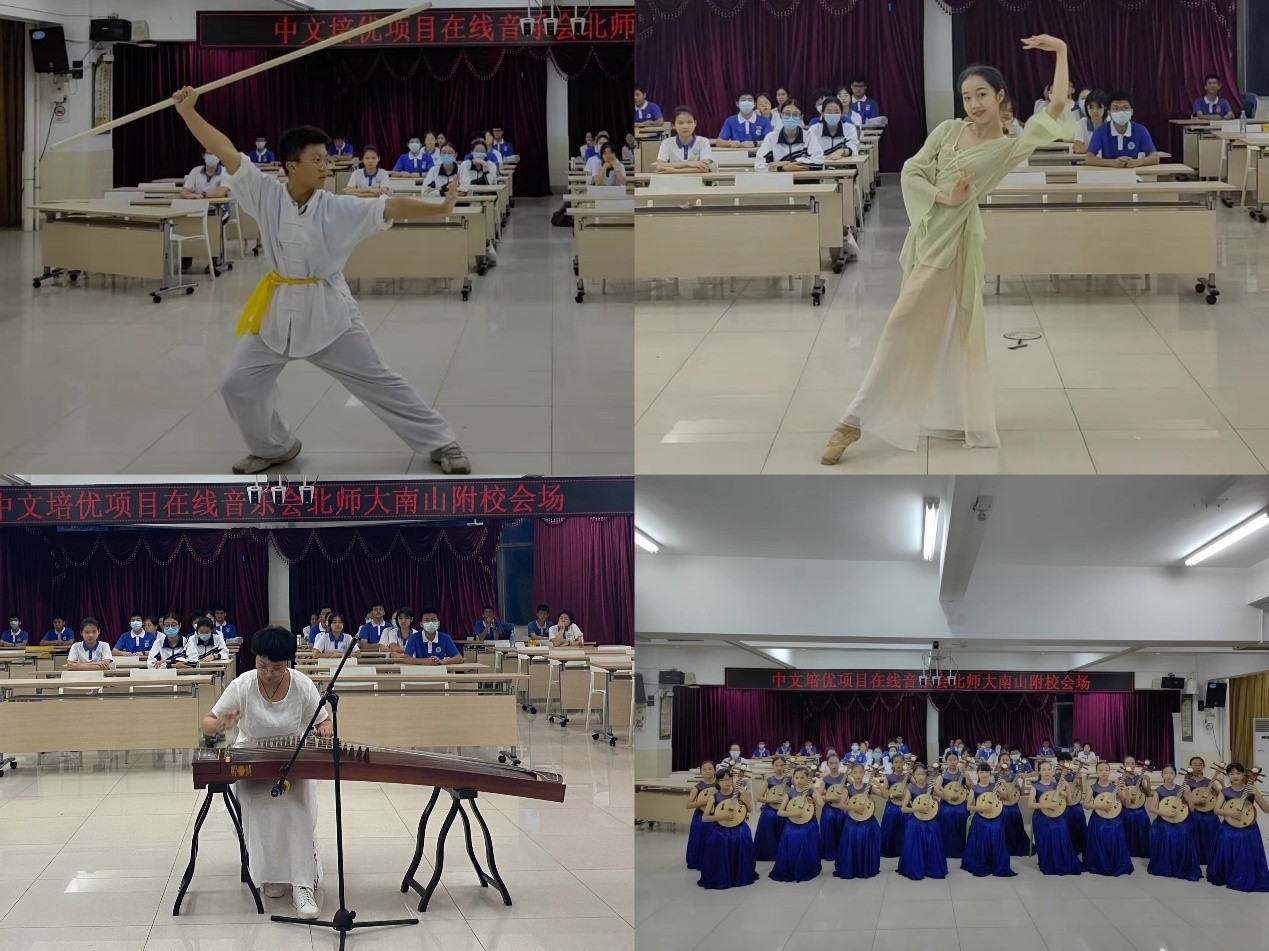 项目第一周活动中最值得一提的,莫过于7月8日由各承办院校自主安排的中英在线音乐会了。北京师范大学项目组、北师大南山附属学校项目组,与英方对接学校一起举办了一场精彩纷呈的在线音乐会。国际中文教育学院张春燕老师用一曲悠扬的古琴拉开了音乐会的序幕,英国学生为我们献上了钢琴独奏,南山学校的同学们更是准备了古筝、琵琶、中国舞、武术等丰富多彩的表演。最后,由南山附校少儿阮乐团合奏的乐曲为音乐会画上了圆满的句号。