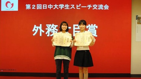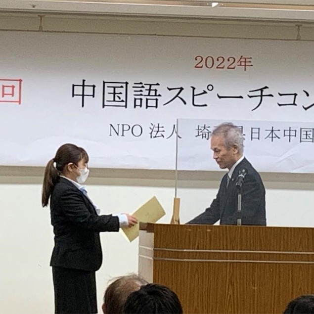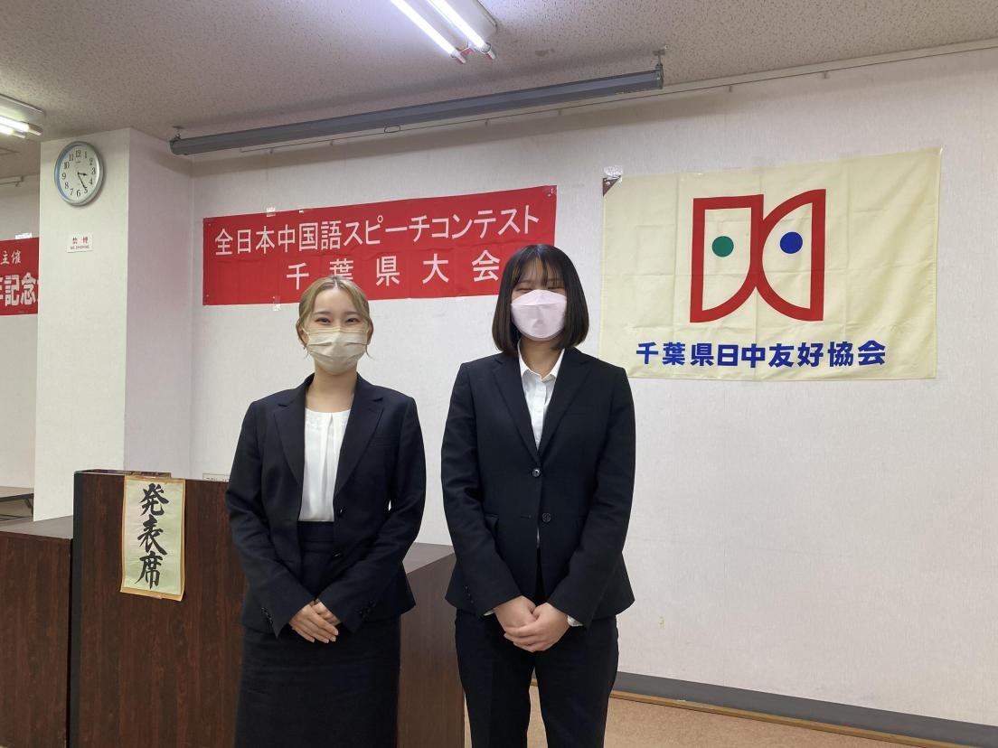 和她一同参加比赛的还有明海大学中国语学科二年级学生佐藤音羽同学。在大学生组中,佐藤同学以抑扬顿挫、充满表现力的汉语,在与其他出场者的激烈竞争中获胜,并获得了船桥市长奖。两位同学同时还获得了代表千叶县参加全国大赛的资格。
