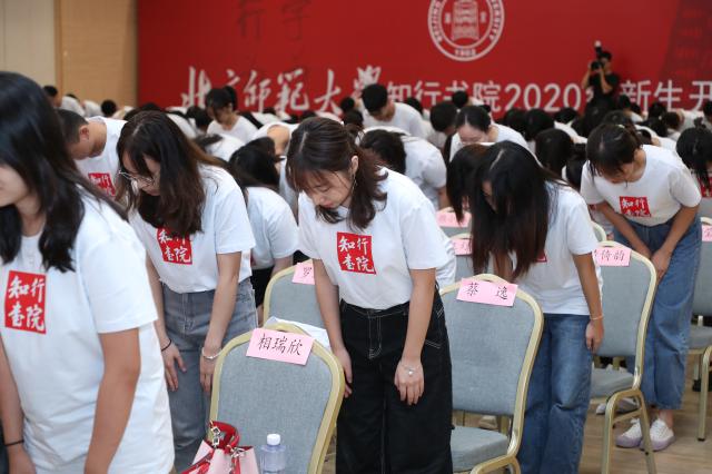 典礼的最后,2020级本科二学位226名新生向老师们行拜师礼,全场合唱北京师范大学校歌。