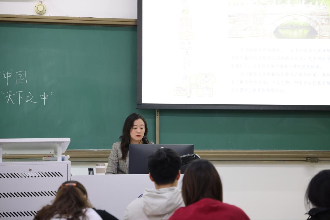 4月14日上午,北京师范大学国际中文教育学院郭晨光副教授对“北京及北京中轴线”进行专题讲座。她系统介绍了北京中轴线遗产点,以及各自蕴含的历史价值。她指出,“北京中轴线”作为理想都城之轴,体现在其始终统领北京城市发展,为中国传统“择中”观念于都城营建中的实践提供了见证,表达出中华文明所秉持的“中”“和”哲学理念。尽管北京中轴线的主题经历了从皇家宫苑到人民共享的时代变迁,但是其背后体现的尚中贵和、多元一体的核心文化基因从未改变,是传统文化精神在现代中国具有强大生命力、中华文明长期延续的有力证明。
