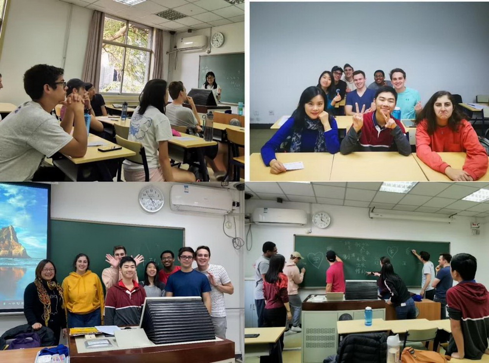 2019 年 8 月 11 日,美国塔夫茨大学 8 位留学生抵达北京,开始了为期 4 个多月的留学生活。他们首先参加了暑期的孔子学院夏令营, 而后通过分班考试正式编入学院的 101、102、和 201 三个语言生班级,真正融入了国际化大家庭。