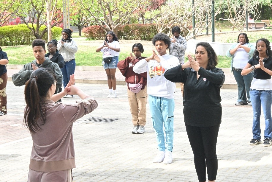 4月7日至18日,在春日的暖阳中,美国巴德高中20 余名师生来到北京师范大学,进行了为期两周的中文学习和文化体验活动。本次中文研修班采用语言学习与文化体验相结合的方式,设置了汉语综合课、文化课和文化参访活动。学生们在课内学习语言课程和文化课程,提升中文水平和交际能力,学习茶文化与太极拳;在课外走访了北京和西安两座城市,参观当地的地标景观,了解历史文化及民俗。