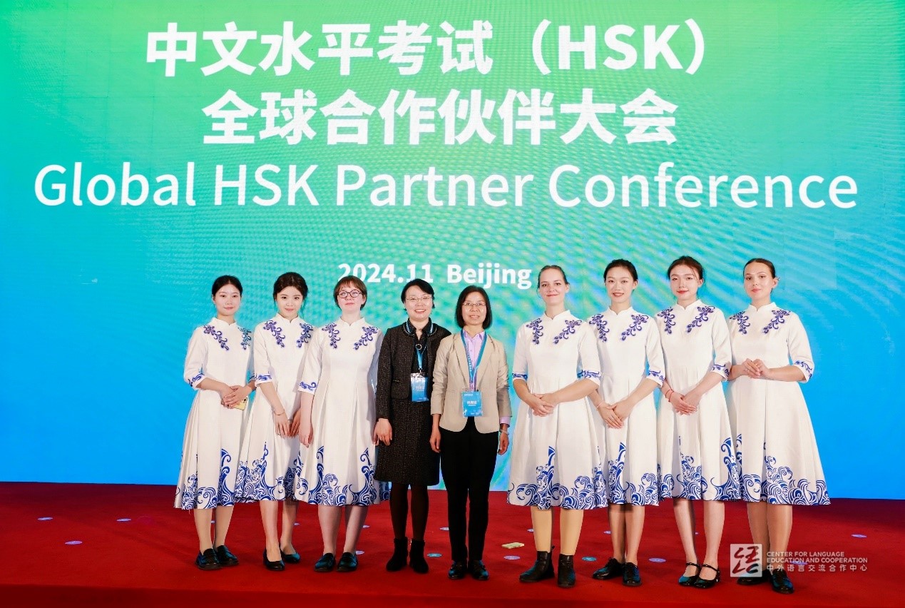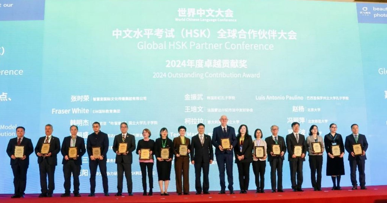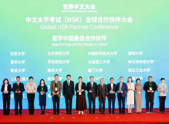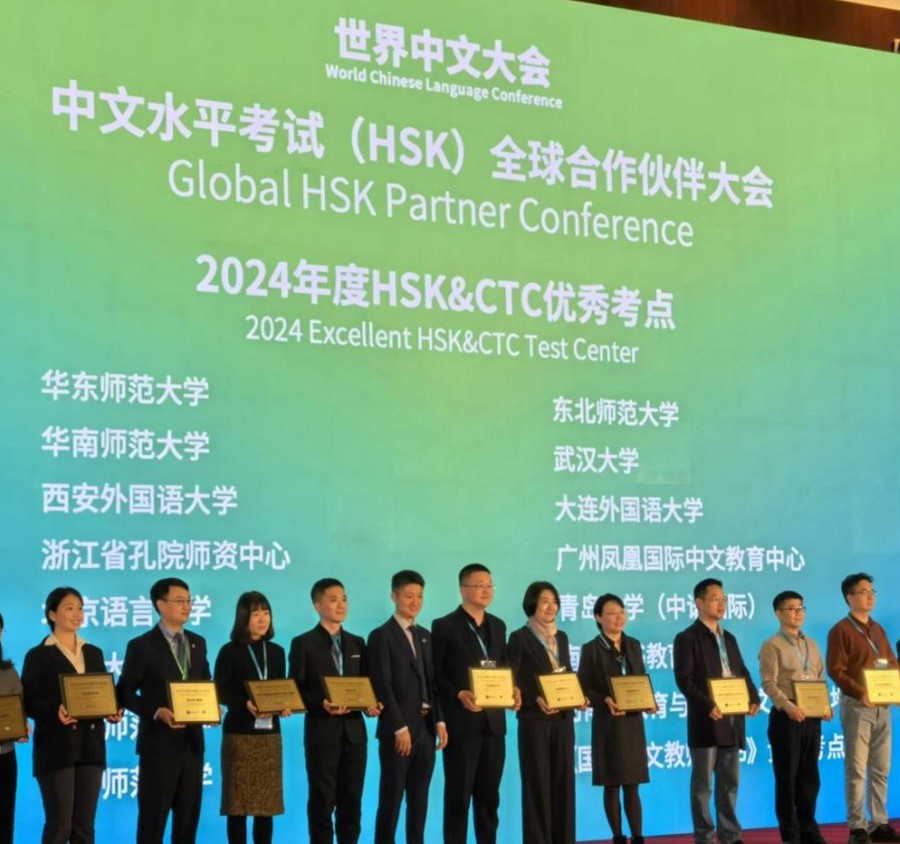 本次HSK大会还对年度优秀合作伙伴和贡献个人进行了表彰,北师大荣获年度《国际中文教师证书》优秀考点和HSK留学中国最佳合作伙伴奖,步延新老师代表学校领奖。冯丽萍院长荣获年度卓越学术贡献奖,并作为获奖代表接受中国教育台采访。此外,学院还派出多名学生在会议现场担任司仪,良好的举止受到会议代表好评。