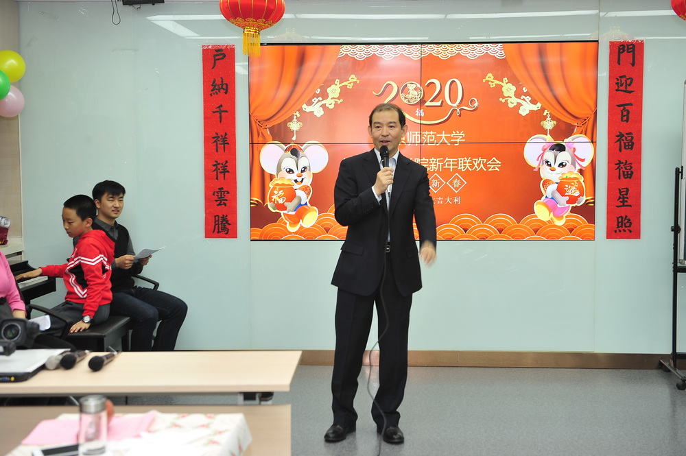 激情开场过后,王学松书记作了简短发言,总结了2019年学院各方面的工作,并祝福大家在2020年取得更大收获。