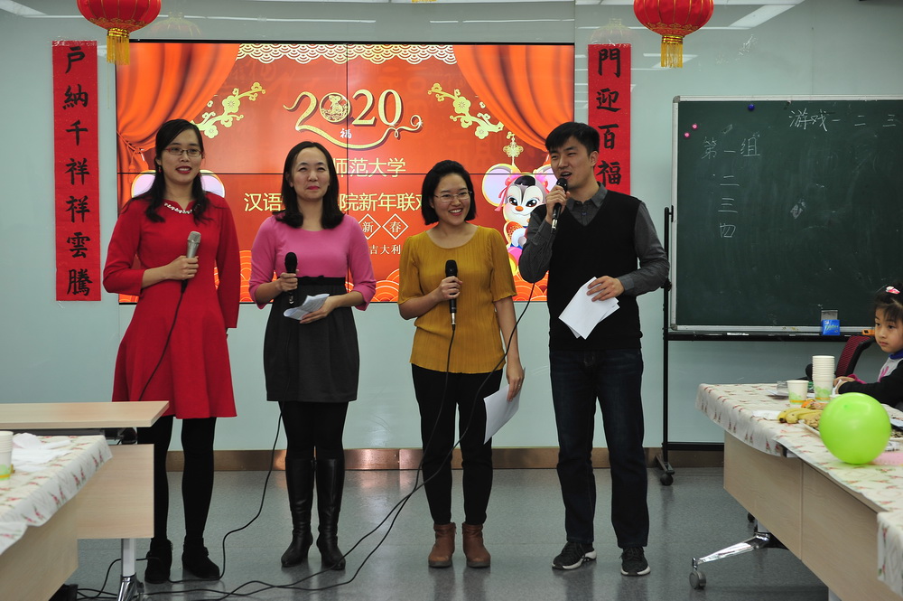 2019年12月31日下午,汉语文化学院教师“迎接2020新年联欢会”在主楼B区308成功举办,约50名教师及家属出席。此次联欢会由任雅才、史静儿、刘旭、焦一和四位老师主持,穿插于整场联欢会的汉斯卡颁奖环节则由刘晓佳、李涣两位老师主持。联欢会分为“春之盎然”“夏之活力”“秋之静韵”“冬之暖意”四个篇章,代表着大家携手一起走过的2019年。