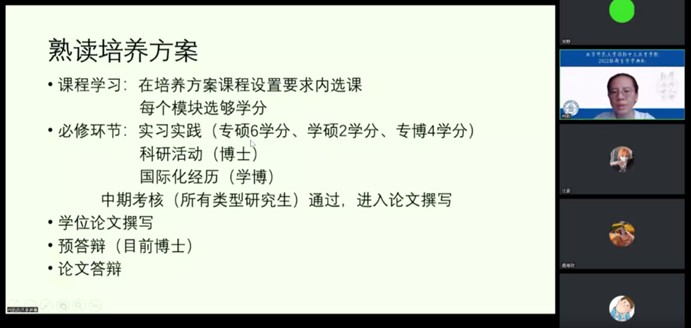 接着,柯老师以培养方案为基础,向大家详细介绍了学习年限、学习方式、学分要求、教学实习、毕业要求等多个内容。柯老师提醒大家,作为新生,要尽快进行身份转变,提前做好学业生涯规划。