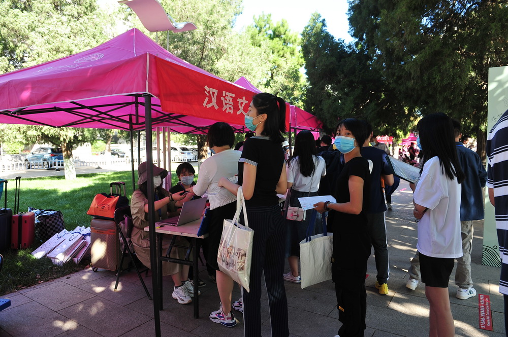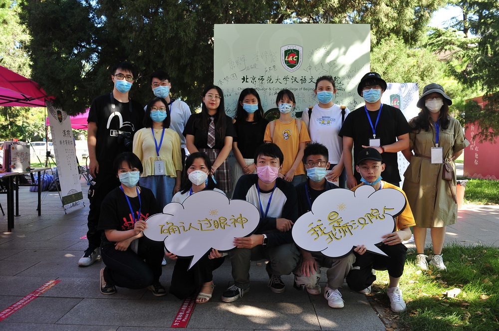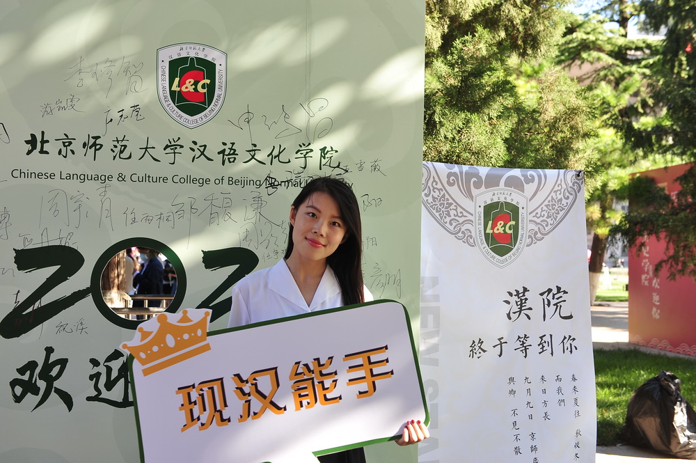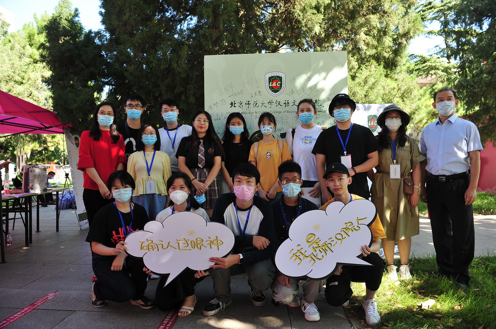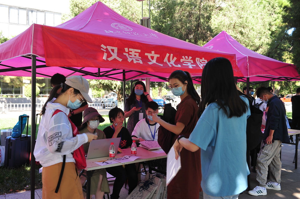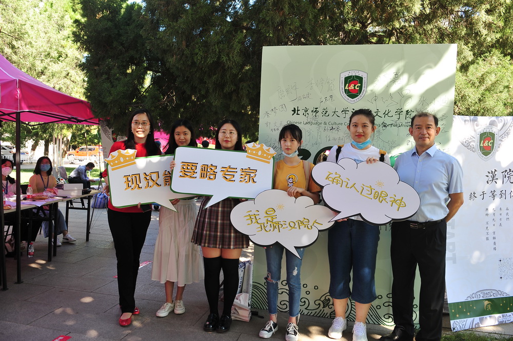 汉语文化学院党委书记王学松、副书记任雅才等到现场迎接新同学。