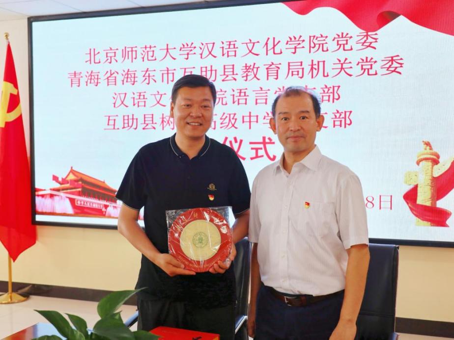 为积极推进中西部教育发展,力争在服务青海、乃至西部地区基础教育和国家教育事业发展方面发挥示范引导作用和应有的影响力,汉语文化学院党委与青海省海东市互助土族自治县教育局机关党委、汉语文化学院语言党支部与互助县树人高级中学党支部签署共建协议,开展共建活动。在共建仪式上,双方都表示结对共建仪式是双方党建工作中的大事也是喜事,是双方互补共赢,促进发展提高教育教学质量的良好开端。