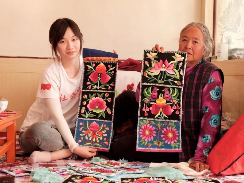 “现在国家大力发展乡村产业发展,我们年轻人要抓住政策的机遇。所以我就辞掉了互助文化局的工作带大家一起致富,因为你为老百姓做事情的话,国家是一定会支持你的。”实践队在考察土族刺绣阿妈手作时负责人这样向我们说到。