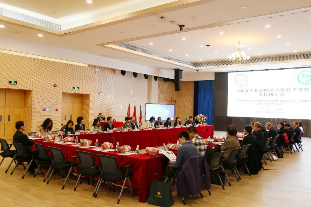 在参加2019年国际中文教育大会之前,张会、汪珍珠两位老师还在珠海校区为汉语国际教育专业的硕士研究生做了关于志愿者教师选拔、赴任、海外教学与生活、学生国际交流项目等方面的培训讲座,并在汉院党总支书记王学松老师的带领下参加了我校一年一度的孔子学院工作会。