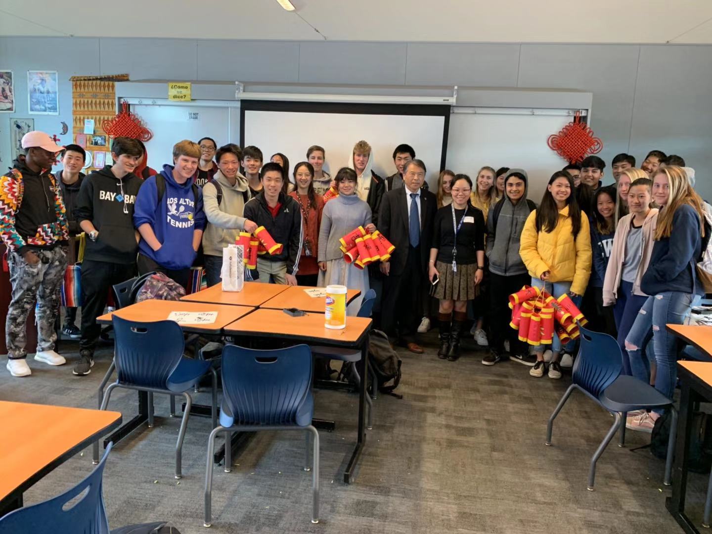 旧金山州立大学孔子学院在当地高中举办“吉祥爆竹”中国文化工作坊