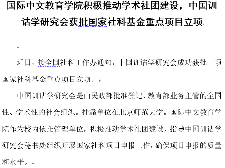 国际中文教育学院积极推动学术社团建设,中国训诂学研究会获批国家社科基金重点项目立项