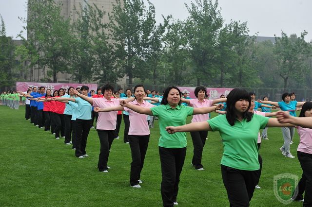 我院教师参加学校广播操比赛,七彩虹现东操场