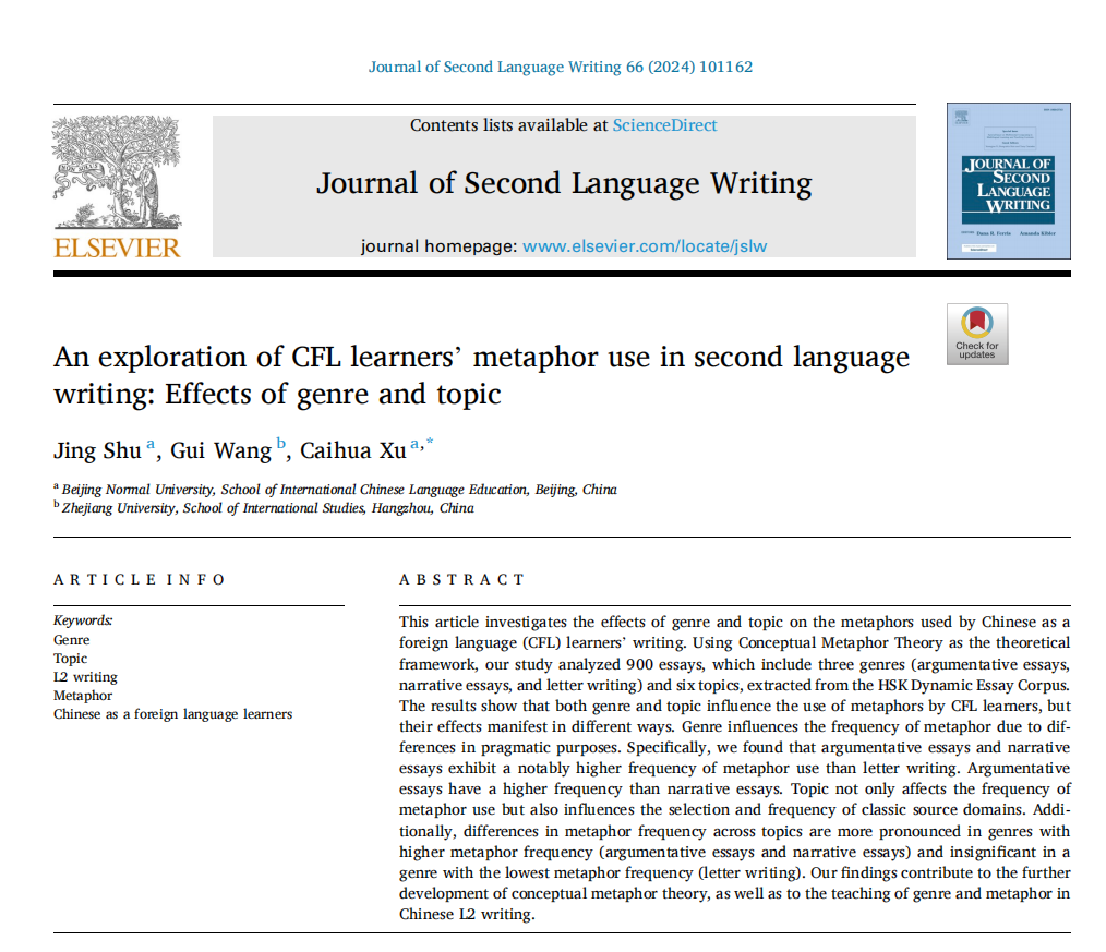 成果速递 | 我院在读博士生舒靖在语言学顶刊Journal of Second Language Writing发表文章